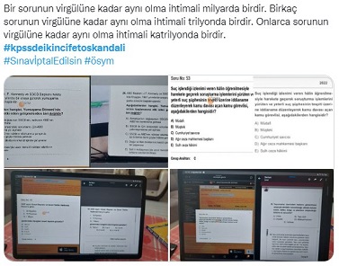 "Bir sorunun virgülüne kadar aynı olma ihtimali milyarda birdir. Birkaç sorunun virgülüne kadar aynı olma ihtimali trilyonda birdir. Onlarca sorunun virgülüne kadar aynı olma ihtimali katrilyonda birdir” (Sözcü, 2.8.2022) KPSS'de sorular aynı çıkmış ve bu ihtimaller kanununa göre imkansızmış! İyi de ey evrimi savunan arkadaşlar! Siz sonsuz sayıdaki ihtimal dışı olasılığı evrim adına onaylıyor, savunuyorsunuz! (‘Evrim’ adlı yazımıza bakılabilir!) Sizin bakış açınıza göre bu soruların örtüşme ihtimali çok normal ve sıradan olması gerekmez mi? İşinize gelmeyince evrimsel mantığı neden reddediyorsunuz?! Yok eğer, "Bu kadar tesadüf olması imkansız, biri bunu ayarladı" diyorsanız, bu bakış açısını evrende olan kurallara neden uygulamıyorsunuz?!