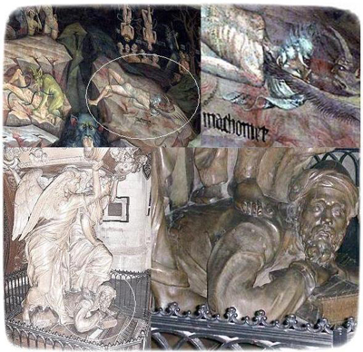 Üstte cehennemde Muhammed resmi ve altta iki dişi meleğin ayakları altında çiğnenen ve elinde Kur’an bulunan Hz. Muhammed tasviri (Belçika’da Dendermonde, Flanders’deki Church Of Our Lady Kilisesi’nde 17. yüzyıl sonlarında Mettehuz van Beveren tarafından yapılan, yaklaşık olarak da 300 yıldır sergilendiği kaydedilen ahşap heykel) “Avrupa Muhafazakarlarının Sesi” sloganıyla yayın yapan Brusselsjournal adlı haber sitesine göre, heykel, Hıristiyanlığın İslam üzerindeki üstünlüğünü, zaferini temsil ediyor.(Yeniçağ, 08/05/2008)