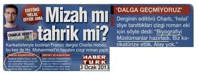 Charb, ilavenin içeriğinin Müslümanlar tarafından hazırlandığını belirterek, derginin İslam’a uygun olduğu görüşünü savundu. Ne var ki derginin özel sayısının tanıtımında karikatürlerin metinlerini hazırlayan Fas kökenli Zineb el Rhazoui’nin kendisini İslam karşıtı ve ateist olarak tanımladığı ortaya çıktı. Sosyoloji eğitimi alan Rhazoui’nin Charlie Hebdo’nun bir çalışanı olduğu ve hiçbir dinî eğitim almadığı ifade edildi. Zineb, “İslam’a karşıyım ve eleştiriyorum.” diyor. Kur’an-ı Kerim’in insanları “öldürmeye davet eden” bir metin olduğunu iddia eden Rhazoui, Hz. Muhammed’in tasvirinin yasak olduğuna dair hiçbir ayet olmadığını savunuyor. Hz. Muhammed’e yönelik provokatif tasvirleri “ifade özgürlüğü” gerekçesiyle savunan dergi, her konuda aynı tavrı izlemiyor. Fransız mizah dergisi, son olarak geçen hafta ünlü çizer Maurice Sinet’yi haksız yere Yahudi karşıtlığıyla suçlayarak işten attığı için tazminata mahkum edildi. ( Zaman, 03.01.2013 )