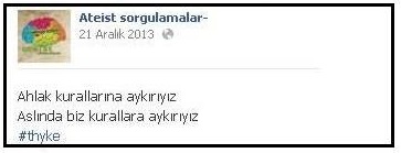 Ensest sapıklığı doğal, eşcinselliğe normal karşılayıp kendilerine hayvanları örnek olarak alan, evlilik dışı ilişkiyi savunup, kadın haklarına aykırı olan genelev türü ortamları erkeklere de genelleştirmeyi talep eden, aynı evde kızlı erkekli kalıp sonra kürtajı savunan ve sonra da kendi dünyalarındaki sapıklığı Müslümanlara mal eden, sadist ruhlu ve bencil bir etik anlayıştır dinsiz ahlak!