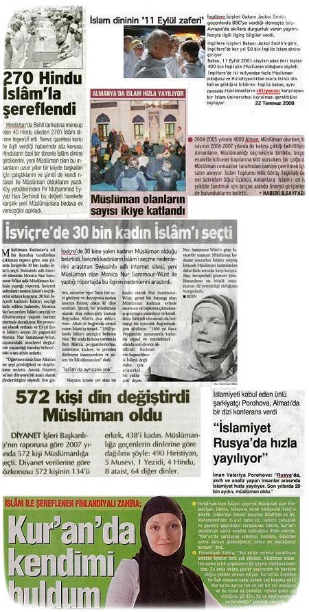 Misyonerler, milyarlar harcayarak Hıristiyanlık propagandası yapıyorlar. Halbuki propagandasız birçok yabancı, İslam’ı seçmiştir.İslamiyet ilim ve akıl dinidir. Dinlerini değiştirip müslüman olan insanların çoğu, ilim adamı ve araştırmacıdır. İslam’ı inceledikten sonra müslüman olmuşlardır.