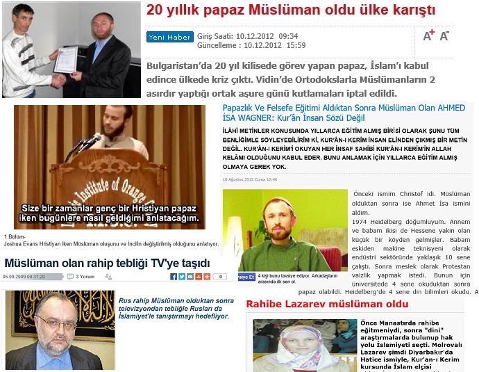 İsveç'in Jönköping kentinde 30 yıl papazlık yapan 76 yaşındaki Leif Skjetne (10.3.2020); Oslo’da büyüyen ve bugün 77 yaşında olan ve İsveç Kilisesi’nde 30 yıl boyunca rahiplik yapan, yaklaşık 15 senedir Skillingaryd ilçesinin papazlığını üstlenirken Müslüman olmaya karar veren papaz (23 Eylül 2020) tekrar Hristiyan olması için 10 Milyon Euro teklif edilen Leif Skjetne; Müslüman olduktan sonra "650 Papazı Müslüman Yapan" Musa Bangura (17 Kas 2021); İslamiyet'i seçerek "İsmail" adını alan (23 Eylül 2021) ABD'li Katolik papaz Prof. Dr. Craig Victor Fenter; Papaz asistanı olup İslam dininin yanlışlarını ararken 12 yıl süren araştırma sonunda kendisi Müslüman olan Haşim Jeansen (08 Ekim 2015); Sofya'da 20 yıl boyunca papazlık ve kilise encümenliği yapan ve sonra din değiştirerek Müslümanlığı seçen Atanas Mihaylov (10 Aralık 2012); Homabay vilayetinin Niyal Gosi köyü kilisesinde papaz olan ve uzun bir sorgulama döneminden sonra Müslüman olan 61 yaşındaki Charles Okuany (19 Temmuz 2019); Baptistler, Metodistler, Episkopalyanlar, Nazarinler, Christ Kilisesi, Tanrı Kilisesi, Katolikler, Presbiteryanlar ve daha bir çoğunu gezip kendini İncil konusunda geliştiren, dinler hakkında araştırmaları sadece Hristiyanlıkla sınırlı kalmayıp, Hinduizm, Judaizm, Budizm, Metafizik, yerel Amerikan dinlerini de araştıran ve sonunda İslam ile tanışıp Müslüman olan Yusuf Estes (1.2.2009); Papazlık ve felsefe eğitimi alıp sonra Müslüman olan Ahmet İsa Wagner (10.12.2012); Katolik rahibe iken İslam'ın kusurlarını bulmak için Kur'an'ı açınca, araştırmaları sonucu Müslüman olan Irena Handono (07 Ekim 2019); Hinduların manevi lideri iken Müslüman olan Şankar Aşarya (19.2.2019); Hollanda Sultanahmet Camisi'nde Müslüman olan Yahudi 87 yaşında Sal van Coeverden (10.5.2018); Yahudi haham iken ailesi ile birlikte Müslüman olan Aaron Kohen eşi Flori Kohen ve kızı Meira (04 Kasım 2008); Misyonerken Müslüman Olan Alman Amir Mohammed Herzog (11 Ekim 2009); müslüman olan yahudi haham Yusuf Hattab (8 Ocak 2012); Budist Keşiş Olacakken Müslüman Bir İmam olan Ahmed Maeno (23 Mar 2022); Araştırmaları sonucu “politikacıların Kur’an’da savaş ve kadın düşmanlığı olduğunu iddia ediyorlar ama bunun aksine Kur’an çok kapsayıcı bir kitap” diyerek (23.10.2017) Müslüman olan Katolik yazar Carnegie Üniversitesi'nin Uluslarası Ahlak Konseyi Direktörü Gary Wills; lisans eğitimini felsefe üzerine almış bir akademisyen ve yazar / analist. Zamanında Rusya Ortodoks Kilisesi’nin en üst kademelerinde yer almış olan ve Başpiskoposluktan İslam'a geçen Vyacheslav Polosin (01 Kasım 2016) ve daha niceleri şehadet getirerek Müslüman oldular.