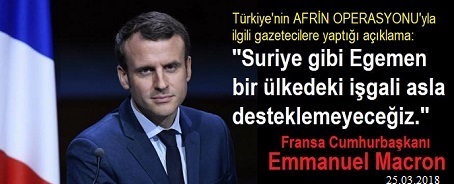 "Batı, Müslüman coğrafyasında arkasına bakmadan kan döker! Gözyaşı ve kan kimsenin umurunda değildir! İnsan hakları gibi büyük yalanlar da sadece aklı kıt olanlar için uydurulan sihirlerdir! Afrika 200 yıldır Fransa, İtalya ve İngiltere’nin arka bahçesi oldu! Batı'nın zenginliğinin kaynağı buydu! Afrika’da koloni, Benin, Fildişi sahili, Mali, Gine, Nijer, Togo, Kamerun, Burkina Faso, Ekvator Ginesi, Çad, Gabon, Senegal, Orta Afrika Cumhuriyeti ve Kongo'dan oluşan 14 ülkelik vergi grubu her yıl 300 milyar doları aşkın bir parayı Fransa’ya öderdi! Bu ülkelerdeki bazı liderler zaman zaman vergi ödememe gibi talihsiz hatalar yaptı! Tabii bu ölümcül bir hataydı! Hepsinin hayatı kısa sürdü! Son 20 yılda, 25 Afrika ülkesinde, 60'ın üzerinde darbe oldu! Bu darbelerin 14'ü Fransa’nın koloni vergisi aldığı ülkelerdi! Bu 14'lüler ortalama ihracatının yüzde 70'ini Fransa’ya yapardı! İthalatlarının da yüzde 80'i yine Fransa’dandı! Buradaki madenler dünya rezervlerinin yüzde 28'i ile yüzde 70'ini kapsıyordu! Yani Paris hem vergi, hem de madenleri toplayıp götürüyordu! Yaptıklarını bir de buralara satıyorlardı! Renault, peugeot, citroen." (Ergün Diler, Takvim, 26.01.2015) Aynı Fransa’nın cumhurbaşkanı Emmanuel Macron, ülkemize yönelik terör faaliyetlerinin merkezi konumundaki Afrin’e yapılan operasyon için ise, “Suriye gibi egemen bir ülkedeki işgali asla desteklemeyeceğiz.” (25.03.2018) diyebilmekte idi.
