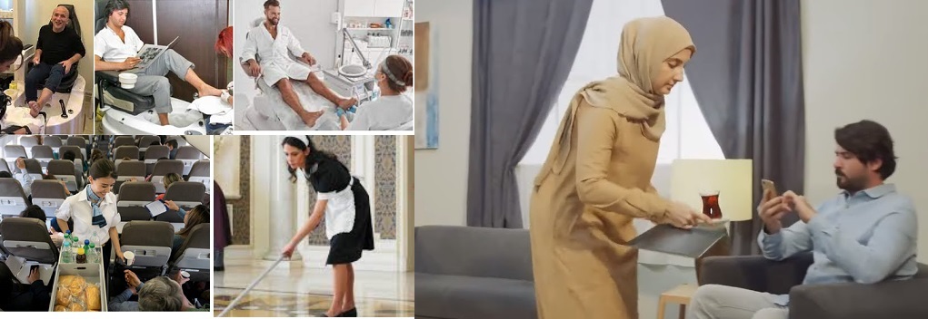 Diyanet, eşine çay getiren ev hanımı içerikli kamu spotu (6.11.2019) hazırlayınca feministler, ‘kadının evde hizmetçi olarak gösterildiğini’ söyleyip tepki gösterirler. Ama o ikramı eğer kadın, 'Fuar tanıtım hostesi; uçak kabin memuru' gibi adlar altında onlarca tanımadığı erkeğe yaparsa olay bir anda normalleşmekte, hatta ‘kadının özgürleşmesi’ adına aynı feministlerce alkışlanmakta ve teşvik edilmektedir! Kadının eşinin (artık kalmadı da, mesela) ayağını yıkaması veya eşine çay getirmesi ‘kadını aşağılama’ yabancı birinin ayağını yıkaması ise ‘çağdaşlık ve özgürlük!’